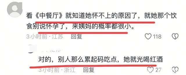 郑裕玲在节目中问她是不是不想要小孩,舒淇表示:其实一直都想要,却一直未能如愿。 40~49岁停工期间,她推掉长片约,专心备孕,中医针灸、西医试管、促排打单情绪失控,B超单攒了厚厚一叠,但努力了9年,自然怀孕概率不到5%,试管成功率不足15%。 网友辣评:娱乐圈的丁克都是假的,要么已经偷偷生了,没曝出来,要么就是想生生不了。 一般有钱的基本不可能选择丁克,肯定有一个原因是我们不知道的。万贯家产,不可能给外人吧,要是普通的没有钱的,生不生也无所谓,得看个人,那些有钱的肯定都会生的,万贯家产是不可能给亲戚的。 之前看中餐厅她对自己真的很苛刻,吃的就一点点,是真的不行的,如果想要怀孕,饮食正常一年估计就能怀上了。 网友:就她那个饮食别说怀孕了,来姨妈的概率都很小。 不吃脂肪,吃的太少,自身营养都不够的情况下,身体会先保命而不是怀孕,和大S一样,她之前也是吃的很少,后面吃胖点就怀孕了。 年轻的时候拼事业,年纪大了功成名就了,身体不行了。为了保持身材节食,对女人怀孕体内激素都是有影响的,现在很多年轻人都没办法自然怀孕,更别说40往上了的。